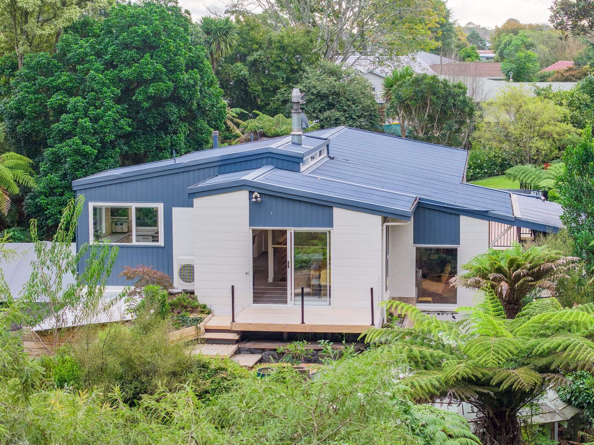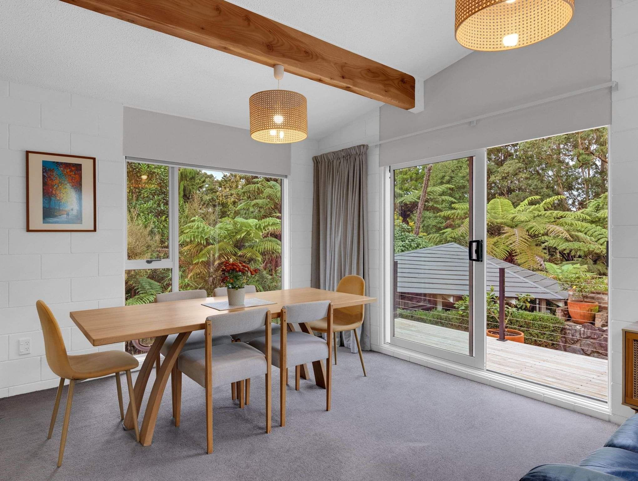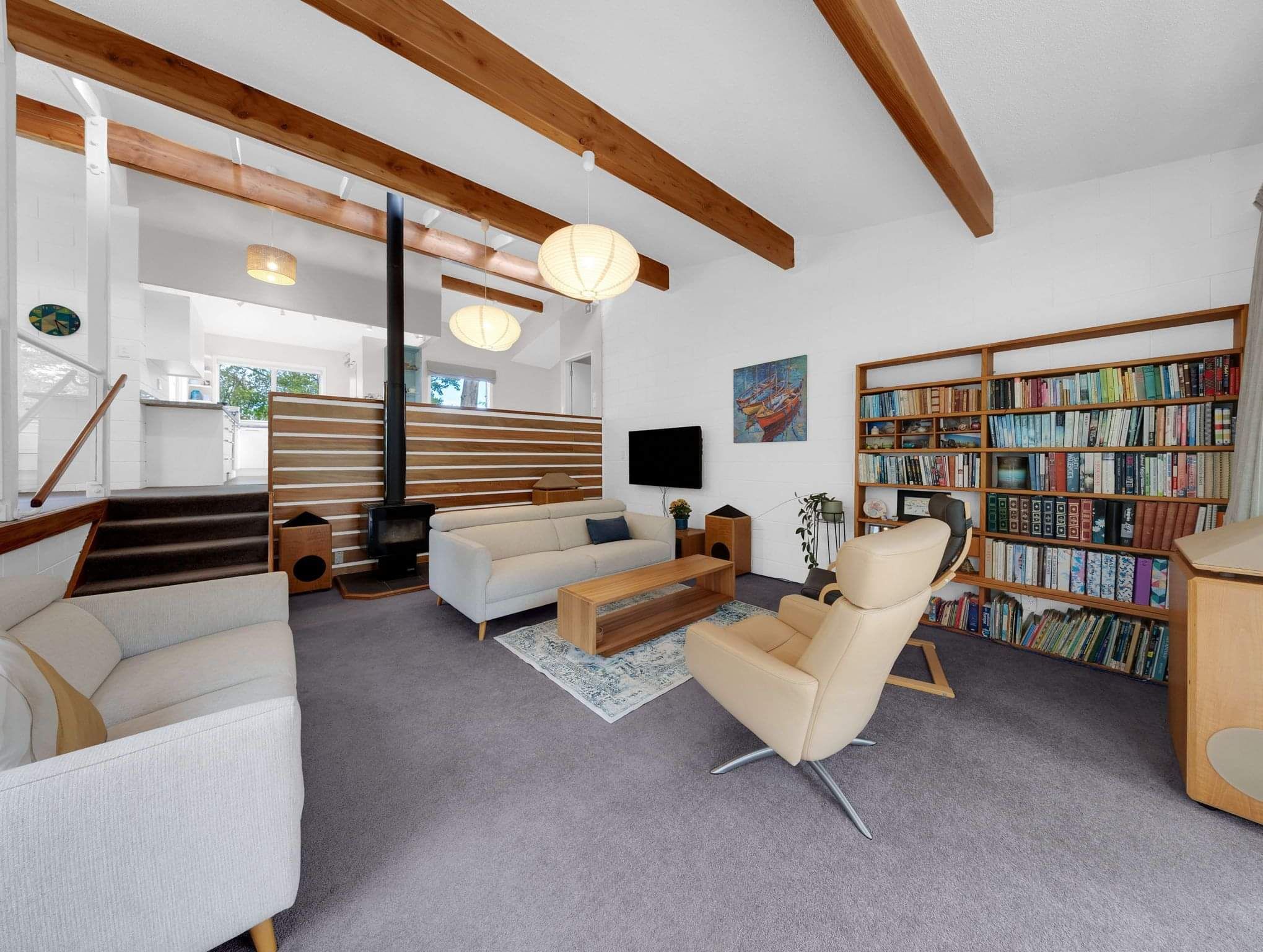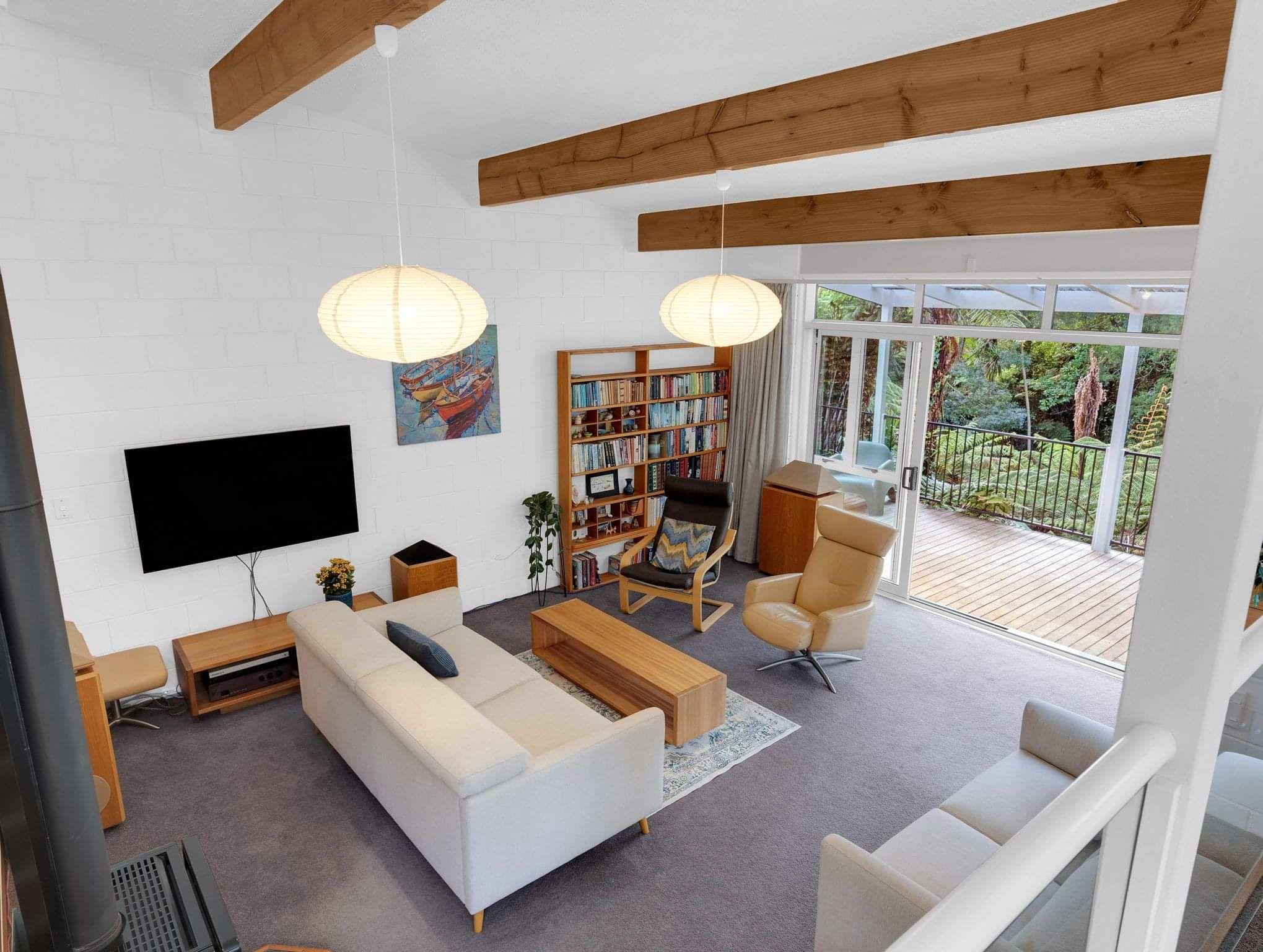 With a 1970’s retro vibe throughout, the home boasts superb indoor-outdoor flow, opening onto multiple decks that overlook a lush green canvas—an ideal setting for entertaining or simply unwinding in peace and privacy.