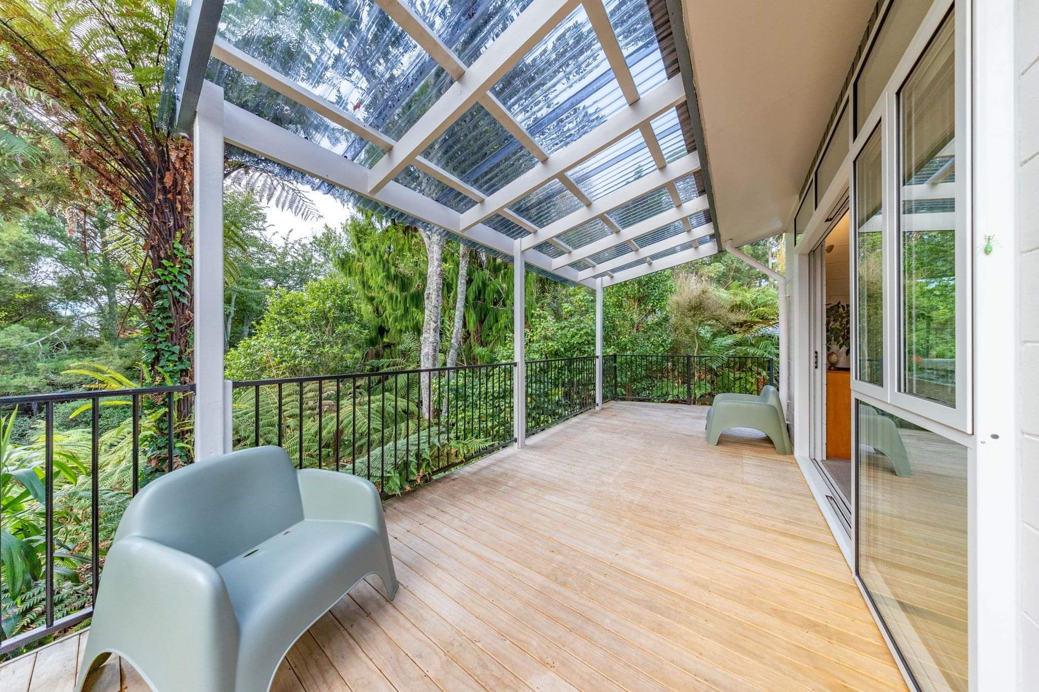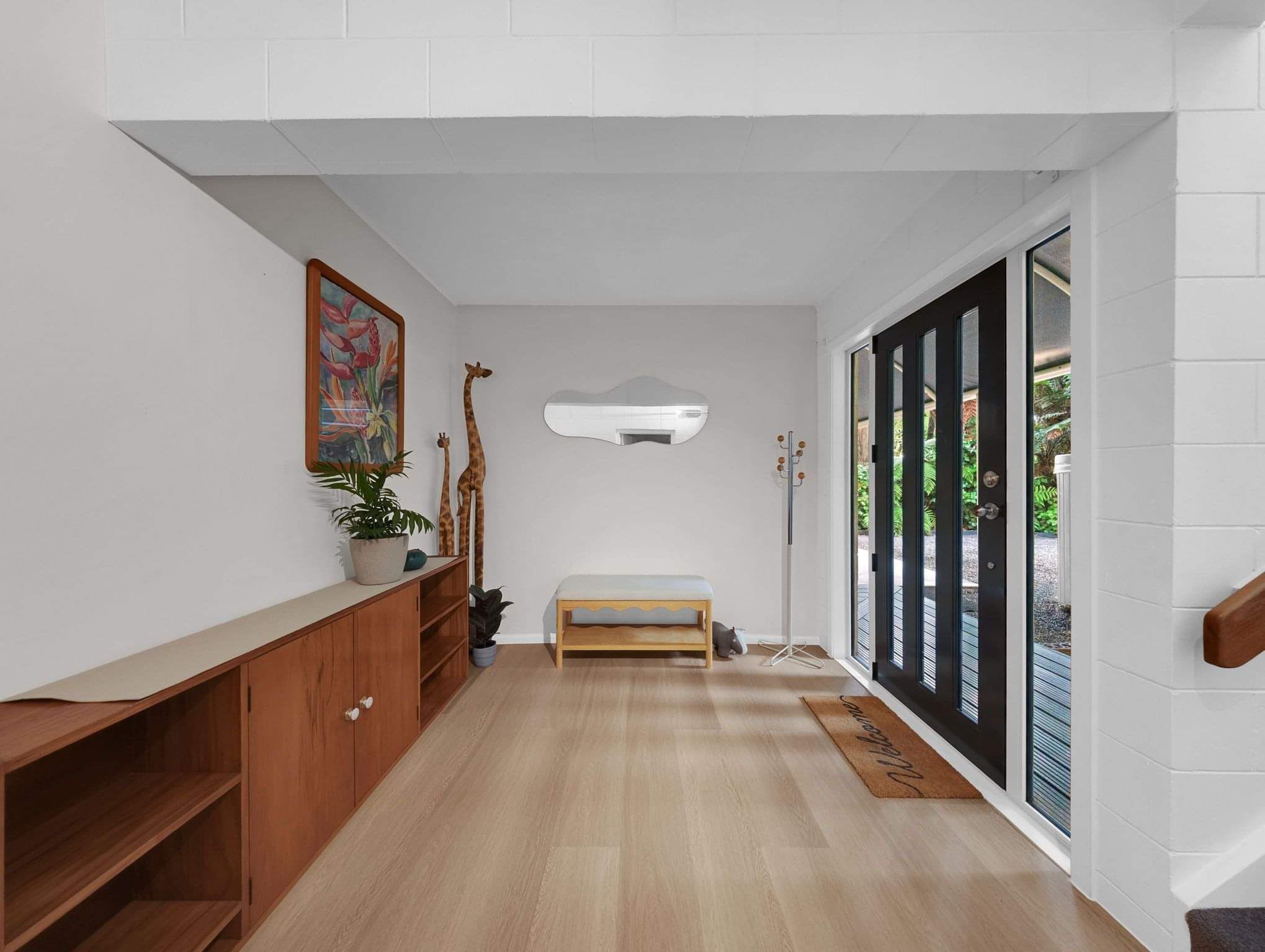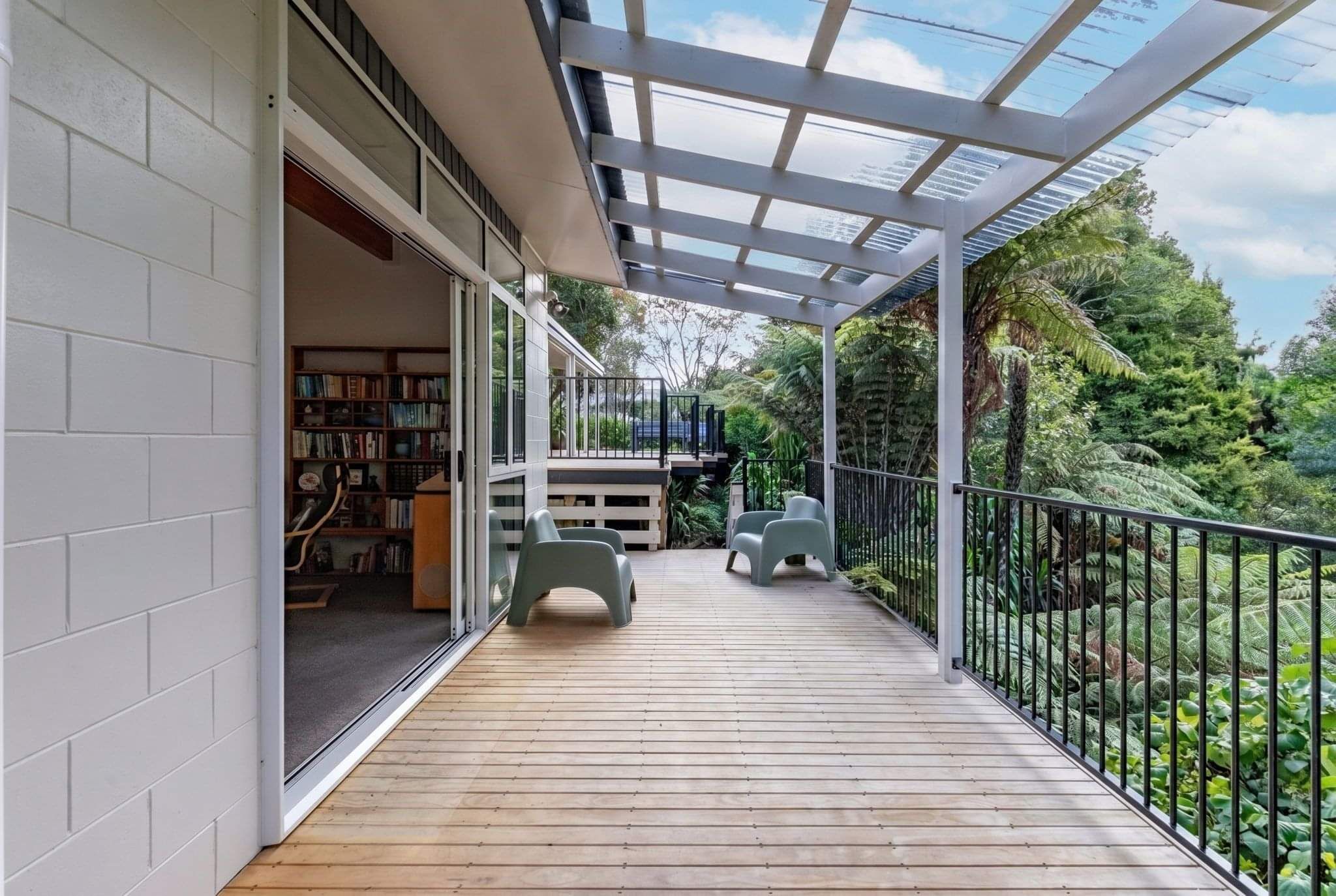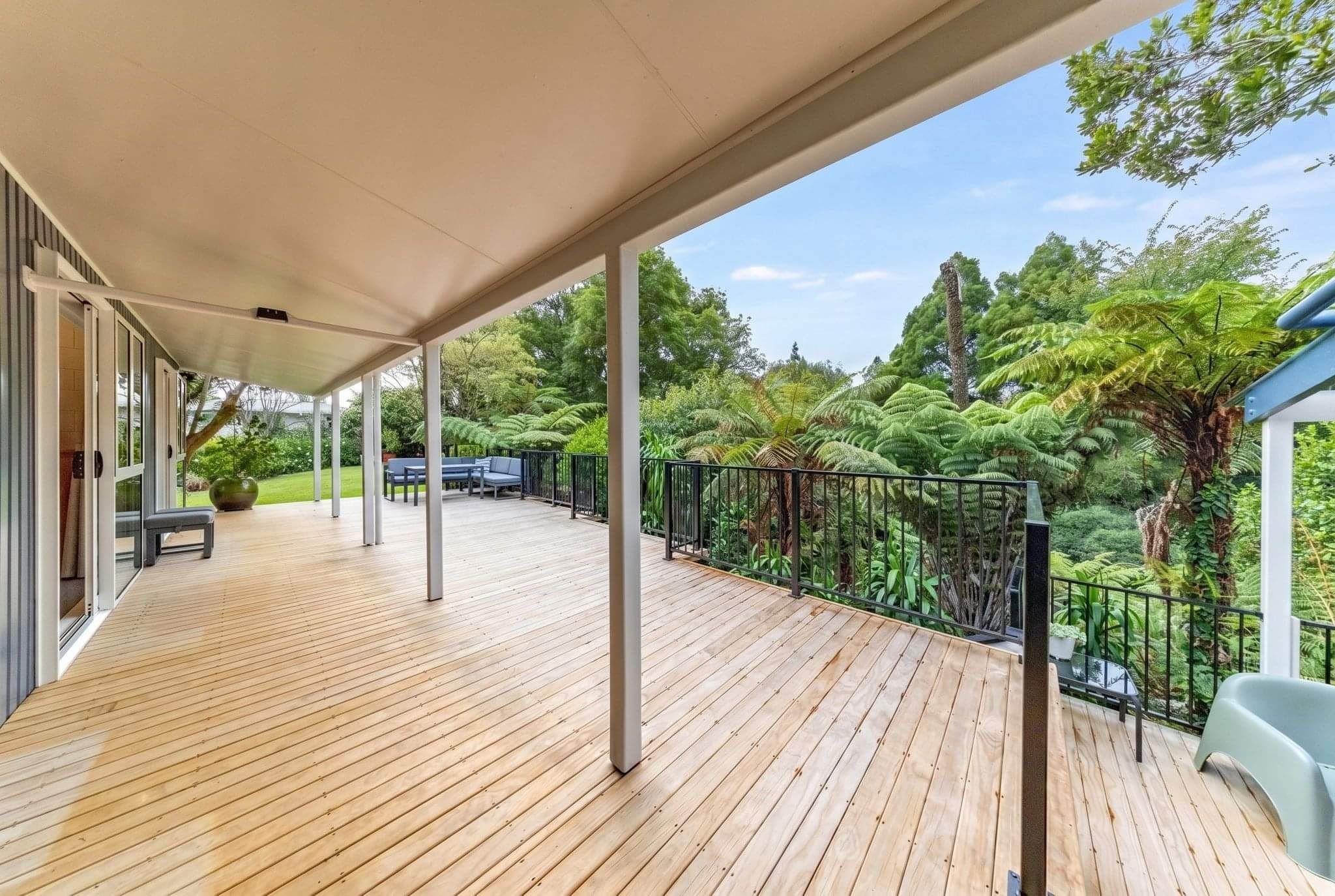 With a 1970’s retro vibe throughout, the home boasts superb indoor-outdoor flow, opening onto multiple decks that overlook a lush green canvas—an ideal setting for entertaining or simply unwinding in peace and privacy.